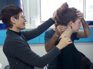 I use five different methods of touch to diagnose the five layers in the cranial system and to recognise which one of these five layers is the key dysfunction. The five-touch technique offers a very precise diagnosis. In each layer, there are certain specific connections to the rest of the body. I decide on which level the cranial dysfunction exists. I check the connection of this dysfunction to the rest of the body.